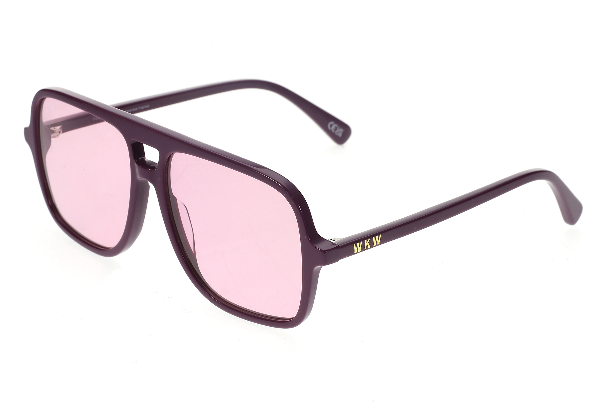Sunglasses featuring a burgundy acetate frame with a bold, structured silhouette. Paired with photochromic purple-tinted lenses that adapt to changing light conditions for a distinctive street-inspired look. Designed with an integrated acetate nose bridge for a comfortable fit and a lightweight construction for everyday wear. The lenses provide UV400 protection against harmful UVA and UVB rays and feature an anti-reflective inside coating. Includes a premium hard case and microfiber cleaning cloth.