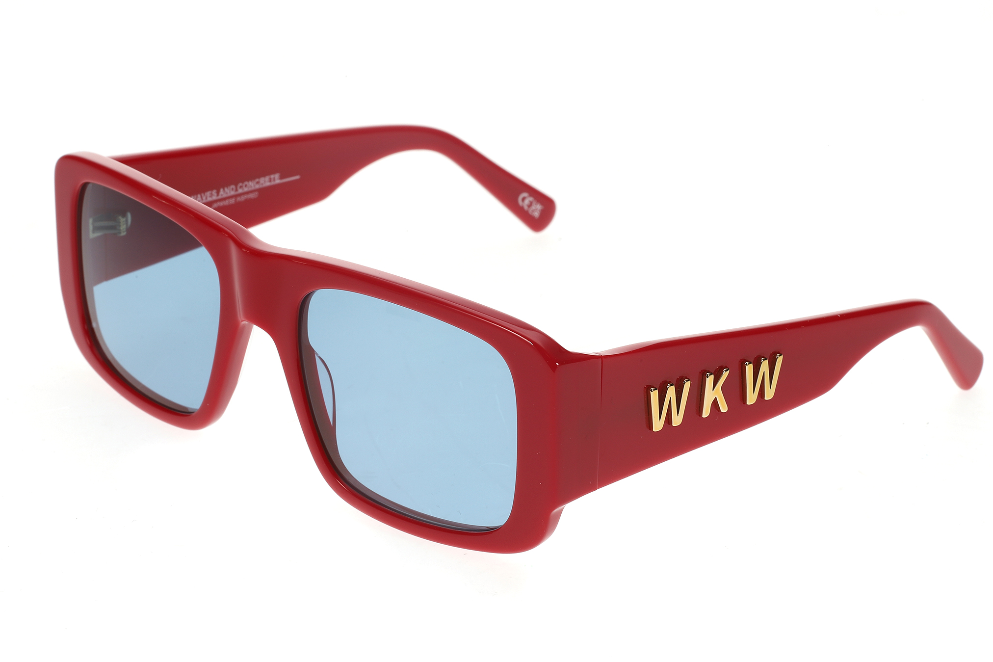 Sunglasses featuring a deep red acetate frame with a bold, sculpted silhouette. Paired with blue-tinted lenses that create a strong visual contrast and a confident overall presence. Designed for a secure, comfortable fit and a solid yet wearable construction for everyday use. The lenses provide UV400 protection against harmful UVA and UVB rays and feature an anti-reflective inside coating. Includes a premium hard case and microfiber cleaning cloth.