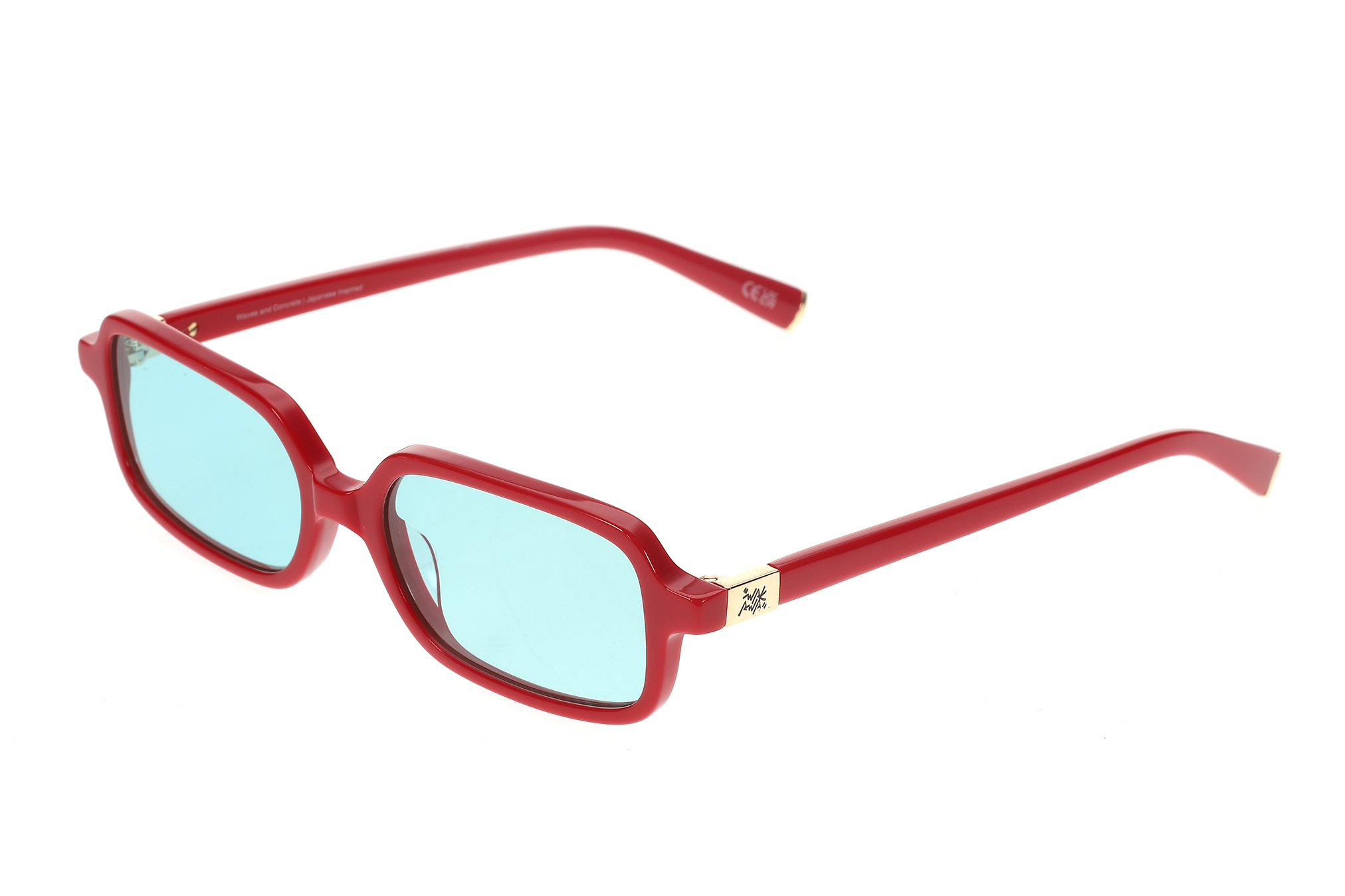 Sunglasses featuring a deep red acetate frame with a compact, sculpted silhouette. Paired with turquoise-tinted lenses that deliver a clean, understated visual balance. Designed for a secure, comfortable fit and a lightweight construction suitable for everyday wear. The lenses provide UV400 protection against harmful UVA and UVB rays and feature an anti-reflective inside coating. Includes a premium hard case and microfiber cleaning cloth.