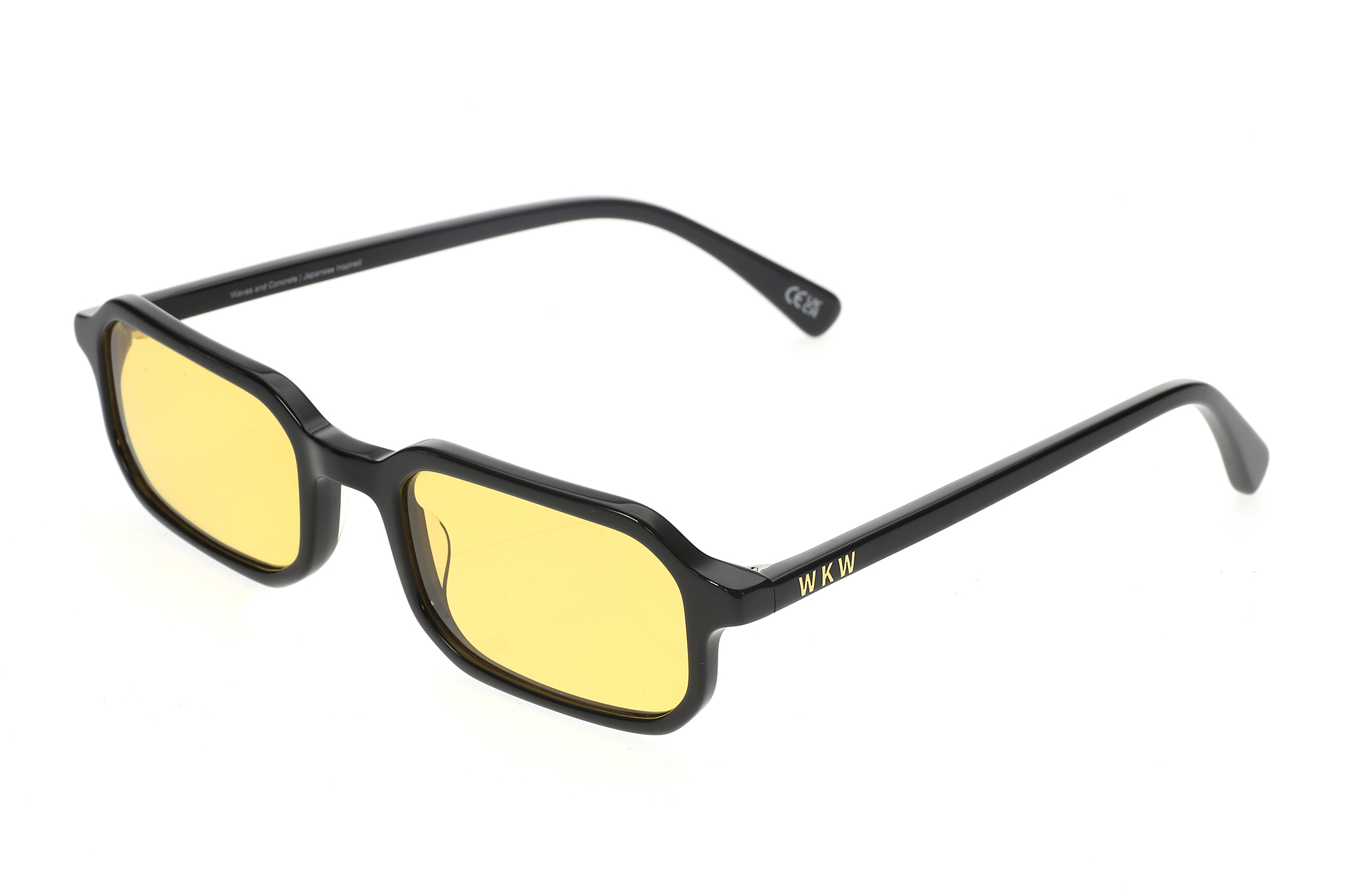 Sunglasses featuring a shiny black acetate frame with a clean, rectangular silhouette. Paired with photochromic yellow-tinted lenses that adapt to changing light conditions and add depth and a refined sense of contrast. Designed for a secure, comfortable fit and a lightweight construction suitable for everyday wear. The lenses provide UV400 protection against harmful UVA and UVB rays and feature an anti-reflective inside coating. Includes a premium hard case and microfiber cleaning cloth.
