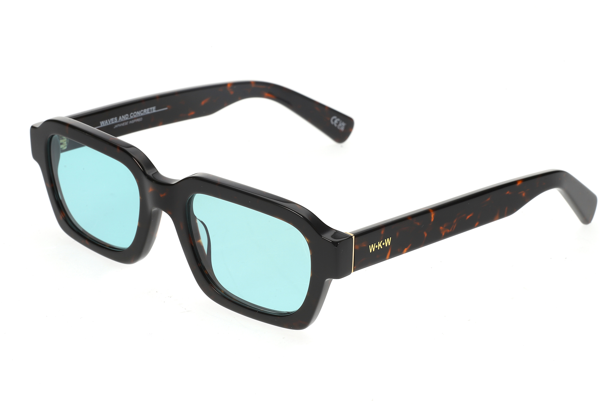 Sunglasses featuring a dark havana acetate frame with a bold, structured silhouette. Paired with turquoise-tinted lenses that enhance a confident, street aesthetic. Designed for a secure, comfortable fit and a solid yet lightweight construction suitable for everyday wear. The lenses provide UV400 protection against harmful UVA and UVB rays and feature an anti-reflective inside coating. Includes a premium hard case and microfiber cleaning cloth.
