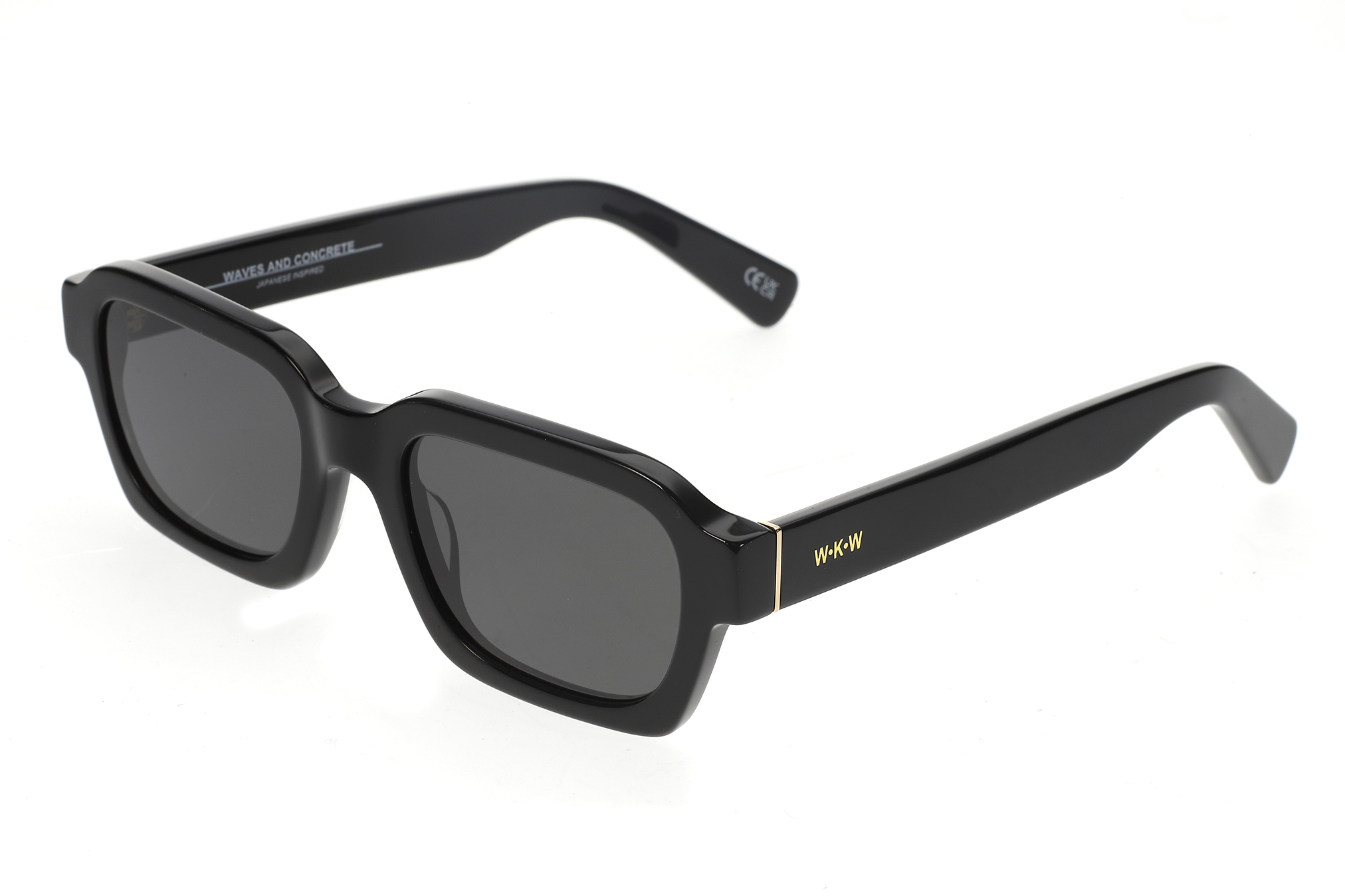Sunglasses featuring a shiny black acetate frame with a bold, structured silhouette. Paired with dark grey-tinted lenses that enhance a confident, street aesthetic. Designed for a secure, comfortable fit and a solid yet lightweight construction suitable for everyday wear. The lenses provide UV400 protection against harmful UVA and UVB rays and feature an anti-reflective inside coating. Includes a premium hard case and microfiber cleaning cloth.